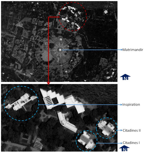Monitored buildings (Auroville); map source: [47].