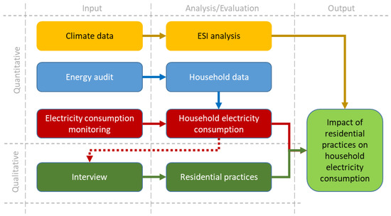 Thus, a significant contribution would be to combine qualitative and quantitative data to understand electricity consumption and practice. Specifically, we applied deductive and inductive approaches through the combined methodology to identify errors and cross-check data findings. Furthermore, while most similar mixed-method studies are typically sequential, a concurrent approach was undertaken in this study. The quantitative electricity consumption data were collected and analysed for eight months. Concurrently, a qualitative exercise was conducted using a theory-driven deductive approach to understand general household electricity consumption and cooling practices. Themes generated deductively were further subjected to an inductive analysis influenced by the results from the demand data. Based on both analytical steps, the study could generate behavioural insights surrounding household cooling preferences and practices in the case study community.