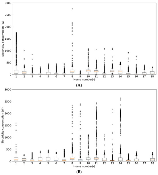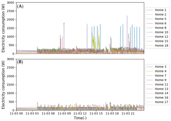 (A) Households with high electricity demand profiles; (B) with comparatively lower electricity demand profiles.