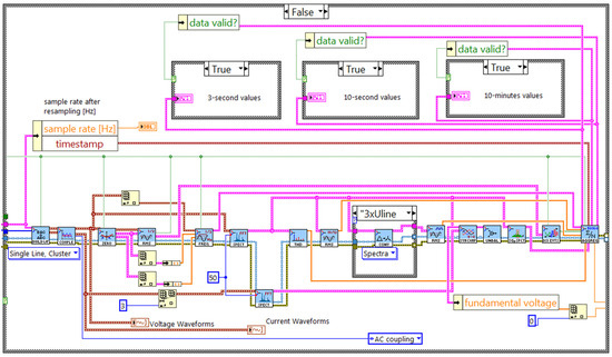 In the fourth part, a quarterly recording from the main LGV1 line with Q80 power quality meters, based on the EN 50160 standard which is based on the measurement techniques described in the international standards IEC 61000-4-30 [16] and IEC 61000-4-7 [17], will be presented. The study will continue with the acquisition and evaluation of energy quality via a NIDAQ 6009 card [18], based on a variable integration period algorithm, installed in parallel with the SICAM Q80 for comparison and interpretation.