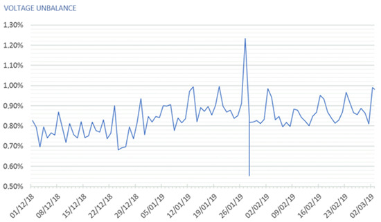 Voltage unbalances affect all three-phase equipment, causing oscillations on the DC bus of three-phase converters [24,25]. It generates power losses in distribution lines (T.-H. Chen 1995) [26], and, in particular, in motors [27], as these are subjected to an undesirable braking torque, which results in overheating, a consequent degradation of electrical insulation and a reduced lifetime. Any voltage unbalance over 1% causes overheating of the equipment, which means that it must be oversized to compensate for this overheating and avoid premature degradation.