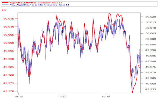 L1 voltage frequency recording (EN 50160 vs. new algorithm).