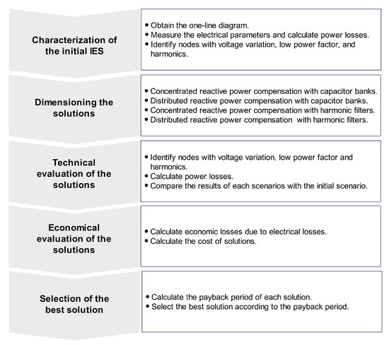 Figure 1 shows the methodology applied in the research and its steps. The methodology comprises five sequential steps ranging from the IES characterization to the definition of the best solution scenario. Each step is described below with its components.
