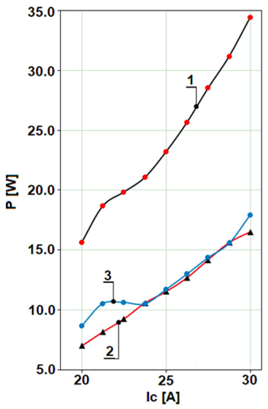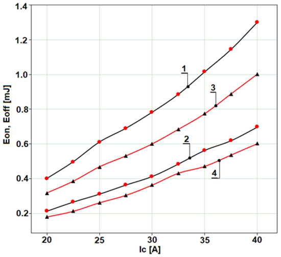 Similarly, the results for Kelvin-connected IGBTs’ E O N show an average reduction of 22.8 % , and the E O F F reduction is 14.8 % , calculated for the range of 20 40   A . The power loss reduction ranges between 4.6   W and 15.7   W , giving a 10   W average result. These results are calculated with a 40   k H z switching frequency, typical for an interleaved PFC-Boost converter.