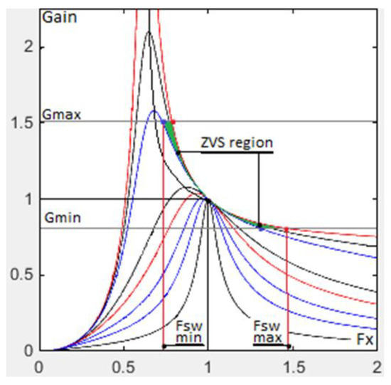 In zero-voltage switching (ZVS) operation, required for the LLC converter, the gate charge Q G z v s is expressed as (assumes charges are linearly related to voltage, i.e., constant capacitances)