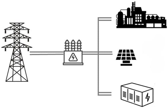 On the user side, energy-based energy storage systems are commonly used, primarily for peak shaving to match power supply with load demand effectively. These systems maximize economic benefits by capitalizing on time-of-use pricing strategies, such as charging during low-tariff periods and discharging during high-tariff periods, thus achieving cost savings and revenue generation for users [19]. The deployment location of user-side energy storage is crucial for optimizing system performance, enhancing load balancing, and supporting reliable power supply. The installation location of user-side energy storage is shown in Figure 1.