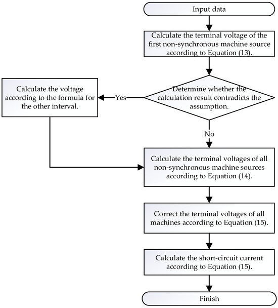 The calculation method for node (i) is as follows. Following the approach used for single-machine multiplication, given the fault steady-state voltage at node (I − 1), the node (i) and its downstream nodes are equivalently treated as a large N-SMS. Then, using Equation (14), the fault steady-state voltage of node (i) is calculated. By applying this method, the fault steady-state voltages of each N-SMS can be determined sequentially from the PCC voltage.