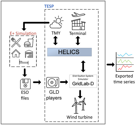 42], which were simulated individually, and the E+ variable of the generated eso file “Facility Total Electric Demand Power” is exported per time step. Subsequently, a GLD player is instantiated for each building, providing phase-specific power input to the GLD model. The flight information fed into the terminal model and the weather conditions for the generation of a Typical Meteorological Year (TMY3) file are used for the Greek island of Santorini for 2018. The simulation period is from 1st of April to 31th of October, a typical tourist season for a Greek island, with a simulation duration of 5148 h and a 30 min time step (2 time steps per hour). It should be noted that the initial data set did not exhibit problematic values, thereby eliminating the need for additional preprocessing.