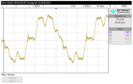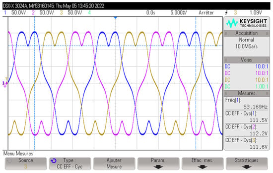as a function of time displayed on an oscilloscope, representing the torque applied to the stator. In this example, the permanent magnets are mounted on the rotor, the stator is supplied by the three-phase supply configuration (