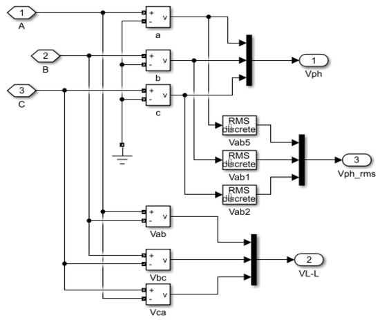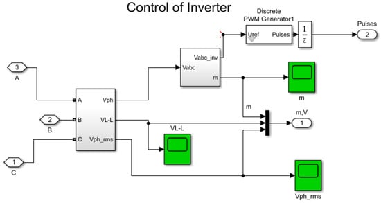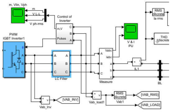 Microgrids provide electricity to nearby loads directly through off-grid control, acting as a voltage source, or even collaborating with an energy storage system. They enhance not only the stability of the loads’ power supply but also their economic efficiency [11]. Small-signal stability is one of the major issues with a microgrid’s dependable operation. Stability analysis in conventional power systems is widely established, and for the many frequency ranges (or time horizons) of potential concern, some models have the necessary features. Figure 6 shows the PWM IGBT inverter connecting control of an inverter and LC filter modeled in MATLAB (2023a). This paper aims to perform power quality enhancement using an inverter control approach with AI capabilities.