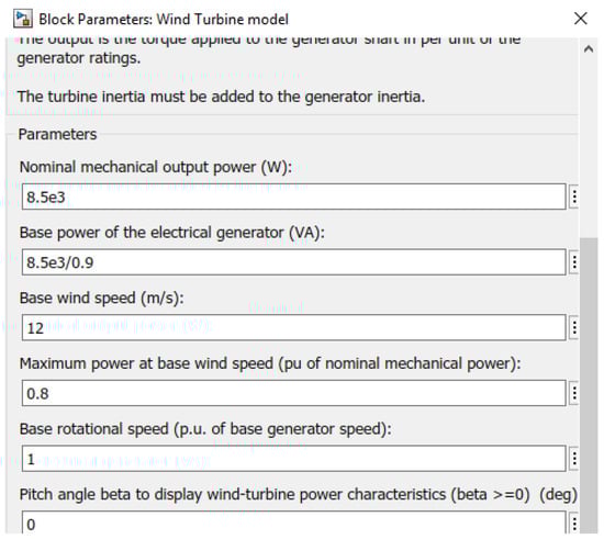 Wind turbine model main block parameters.