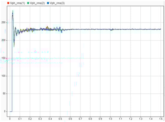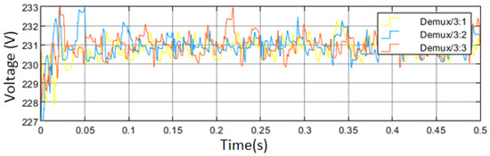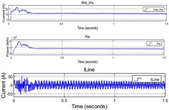 The power from the DC microgrid is then changed to AC using converters. To enhance quality power, the inverter parameters are tuned to produce power that meets the demands. Figure 8 shows the control of the inverter circuit, with Vph, VL-L, and Vph_rms as output measured results in this research. The Vph is connected to a discrete PWM generator through Vabc_inverter, with two pulses generated per the designed equation.