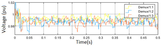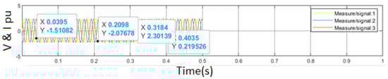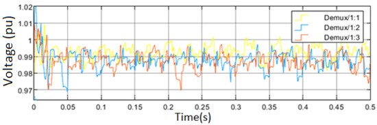 where and are the integral gain and proportional gain of the voltage proportional-integral control, respectively, representing the difference between the specified reference and the calculated voltage in the inner loop. The internal current loop nevertheless regulates the output current of the inverter and keeps track of the external voltage loop reference current. Additionally, the current control loop creates the reference voltage ( and ) of direct-quadrature axes for the PWM in accordance with the current references, and , generated by the power control loop and voltage control loop in the two systems. The microgrid operating parameters are dynamically changed to suit current conditions by implementing virtual impedance and droop controllers simultaneously. A PI control scheme can also be used to implement the outer voltage controller, with the result of the controller output provided by Equation (12):