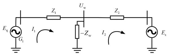 These results demonstrate that the DFIG behaves as a negative impedance [21,22] during fault conditions, whose magnitude is closely related to and . Therefore, the DFIG’s equivalent negative impedance can be expressed as: