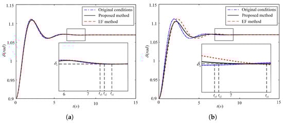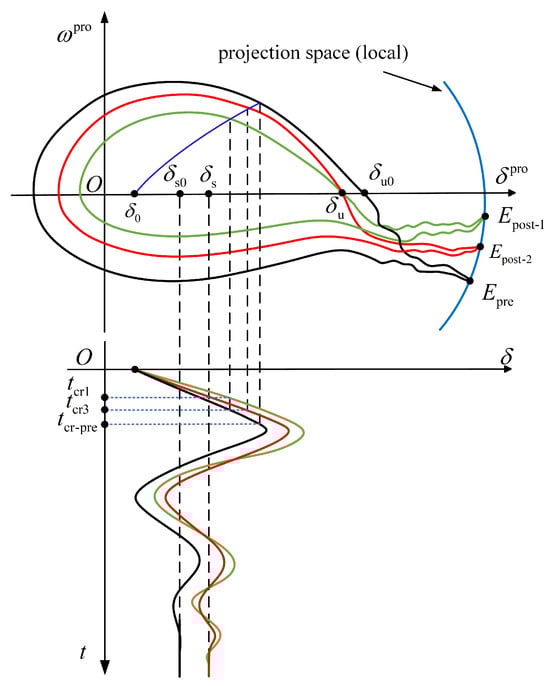 Here, and represent the starting points of BSD manifolds before and after faults, respectively, both mapped in the projection space, while the blue curve demonstrates a sample fault trajectory. The relationship of demonstrates the contraction of the BSD from pre-fault to post-fault conditions. After implementing the PSI regulation, the relationship of confirms BSD expansion, providing theoretical validation of the proposed method’s effectiveness in enhancing system stability.