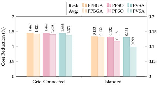 This manuscript addresses these shortcomings by proposing an advanced PPBGA-based EMS explicitly designed to optimize BESS operations in AC MG environments, targeting a simultaneous reduction in power losses and CO2 emissions. The proposed algorithm integrates technical constraints rigorously, considering both grid-connected and isolated operational states, thus enhancing applicability and versatility compared to existing EMS methodologies. A detailed comparative assessment against established optimization approaches, such as PSO and VSA variants, provides rigorous evidence of PPBGA’s advantages concerning solution quality, robustness, and computational efficiency.