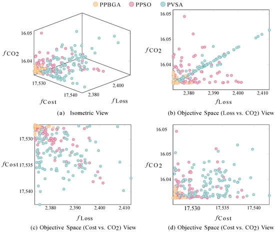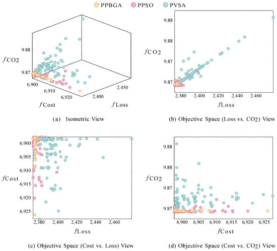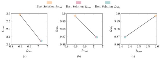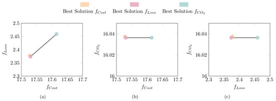 Each of the three objective functions, power losses (1), emissions (2), and economic cost (5), is minimized independently. This strategy facilitates a more transparent evaluation of the control algorithm’s effectiveness in addressing specific technical, environmental, and economic priorities. The separation also enables a clearer understanding of trade-offs in scenarios with limited resources or competing constraints, particularly relevant in hybrid microgrids operating under variable grid and load conditions.