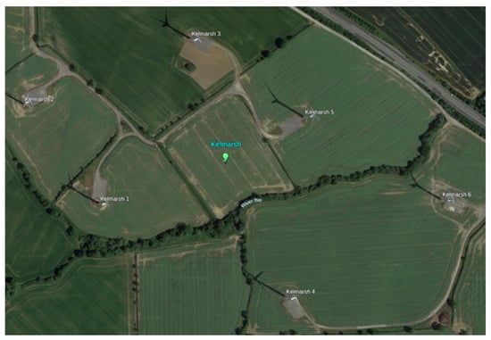 The dataset used in this study was obtained from the Zenodo website [37], which provides data related to the wind turbine’s working conditions in Kelmarsh Wind Farm from 2014 to 2020. Kelmarsh Wind Farm, shown in Figure 5, is a notable renewable energy installation in the United Kingdom near Kelmarsh, Northamptonshire.