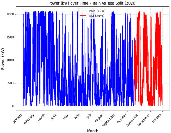 This wind farm consists of six 2.05 MW Senvion MM92 horizontal-axis wind turbines. An example of the MM92 wind turbine is shown in Figure 6. Detailed technical specifications of these turbines are available on the following website [39]. The Senvion MM92 wind turbines have a SCADA (Supervisory Control and Data Acquisition) system. It plays a crucial role in monitoring and controlling turbine operations in real time by collecting data from various sensors and equipment. The data were originally recorded at 10-min intervals, but for our analysis, we aggregated them into hourly data by taking the average of each hour. Also, the dataset selected for analysis pertains to Turbine Number 1 and 2020.
