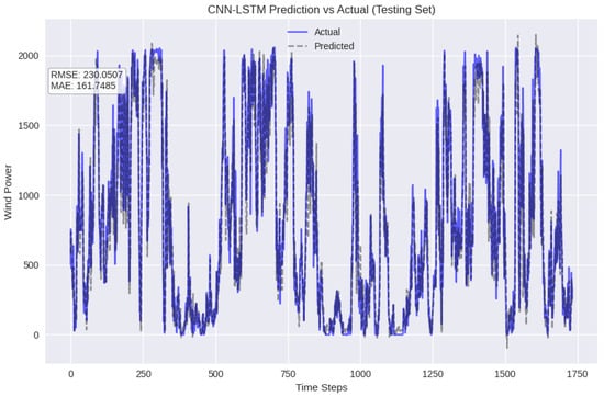 Machine Learning (ML) and Deep Learning (DL) are subsets of artificial intelligence that allow systems to learn from data. Deep Learning models have demonstrated exceptional capabilities in capturing complex, nonlinear patterns in wind power data, making them highly effective for wind power production forecasting. These models, particularly Recurrent Neural Networks (RNNs) and their variants like Long Short-Term Memory (LSTM) networks [11], as well as integrated models like CNN-LSTM [12], excel at identifying intricate temporal and spatial patterns in wind data. These Deep Learning techniques can significantly reduce prediction errors, improving decision-making processes in power system management [13]. However, despite offering superior accuracy, Deep Learning models often have the drawback of slower response times compared to traditional Machine Learning methods. For the sake of completeness, it is worth noting that Machine Learning models, such as Gradient Boosting Regression, have also been applied in wind power forecasting and energy consumption prediction, demonstrating potential in addressing complex energy tasks [14,15]. However, Deep Learning models are gaining preference for their ability to model the complexity inherent in wind power data.