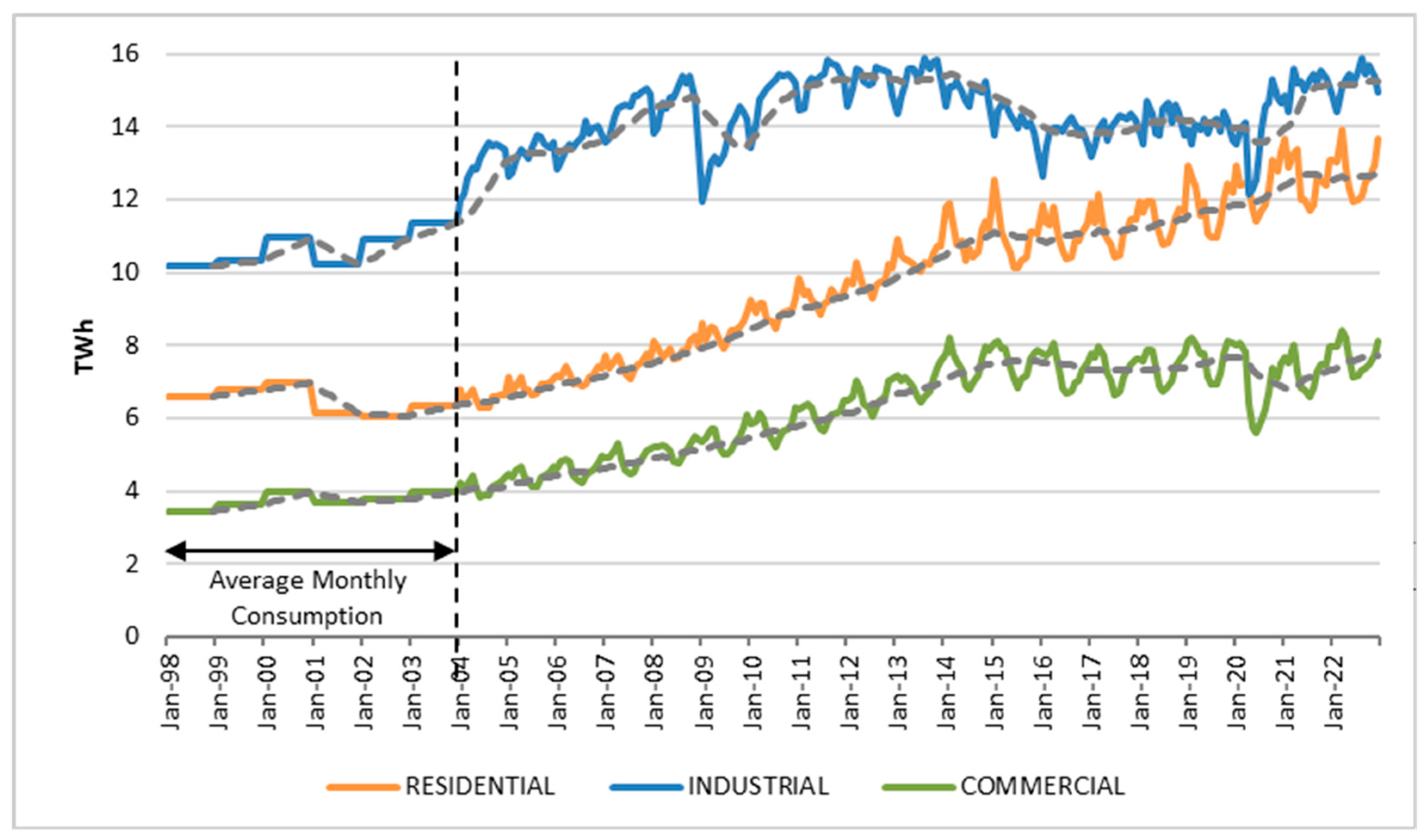 Regarding the industrial sector, consumption has remained practically the same over a decade. This is because as soon as it starts to recover from one crisis, another one occurs. About commercial consumers behavior, the effects of rationing are similar to the other two sectors, but this sector suffered the most from the COVID-19 crisis. The various economic and political crises also led to a stagnation of consumption growth for almost a decade.