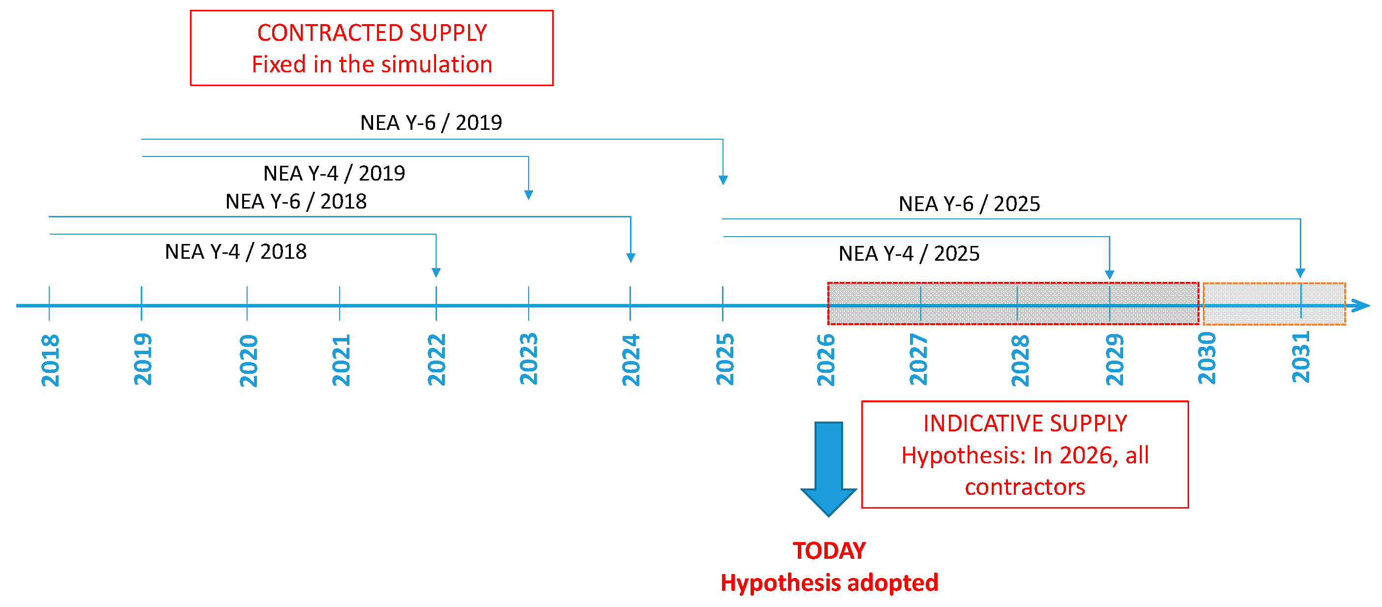 Figure 6 presents the three demand projections between 2026 and 2029, in average MW (MWh per year divided by 8760 h per year), used in this simulation.
