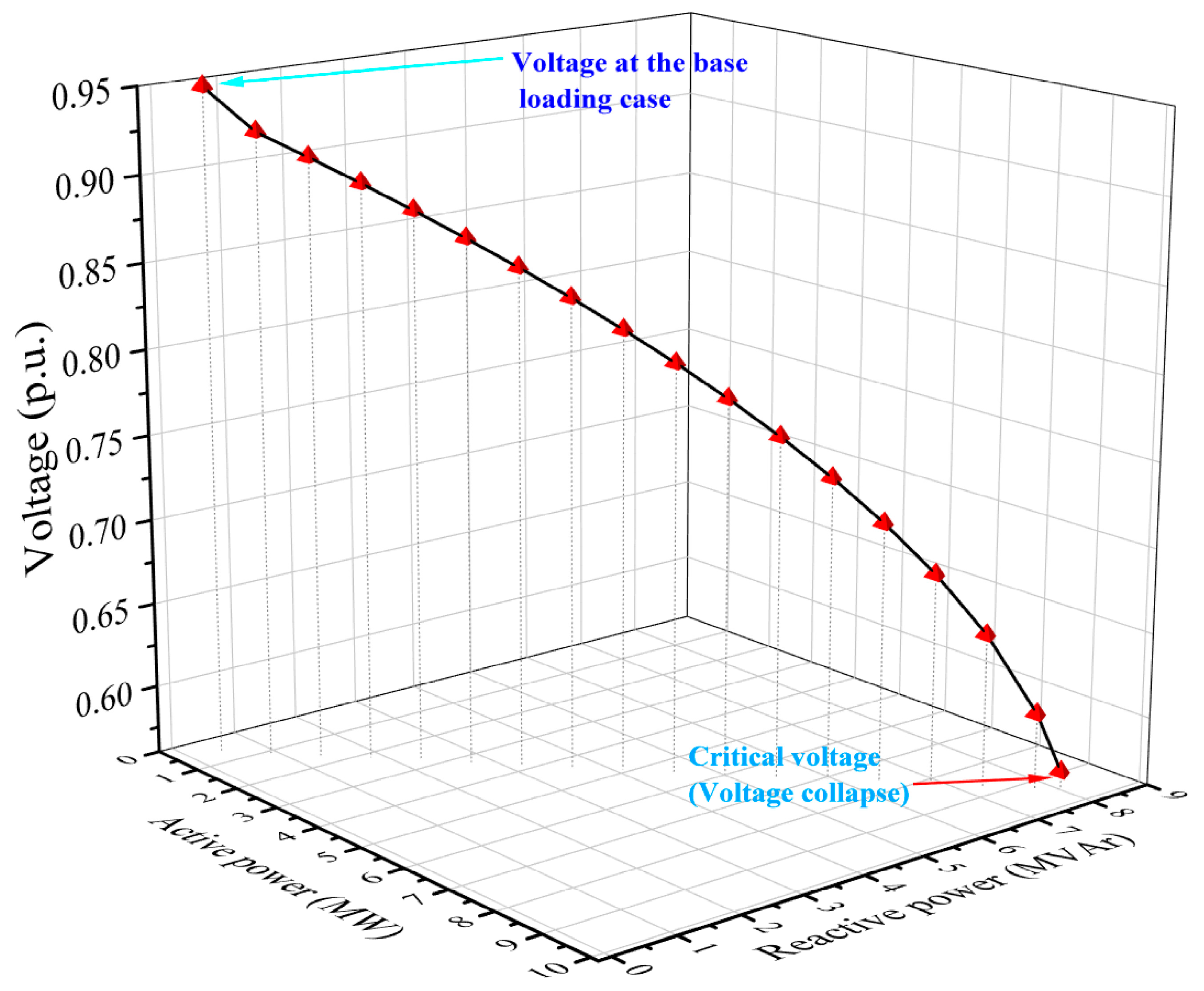 When the load goes above the limit, the solution doesn’t converge. In this instance, the voltage collapse point can be determined by reducing the load by a certain quantity.