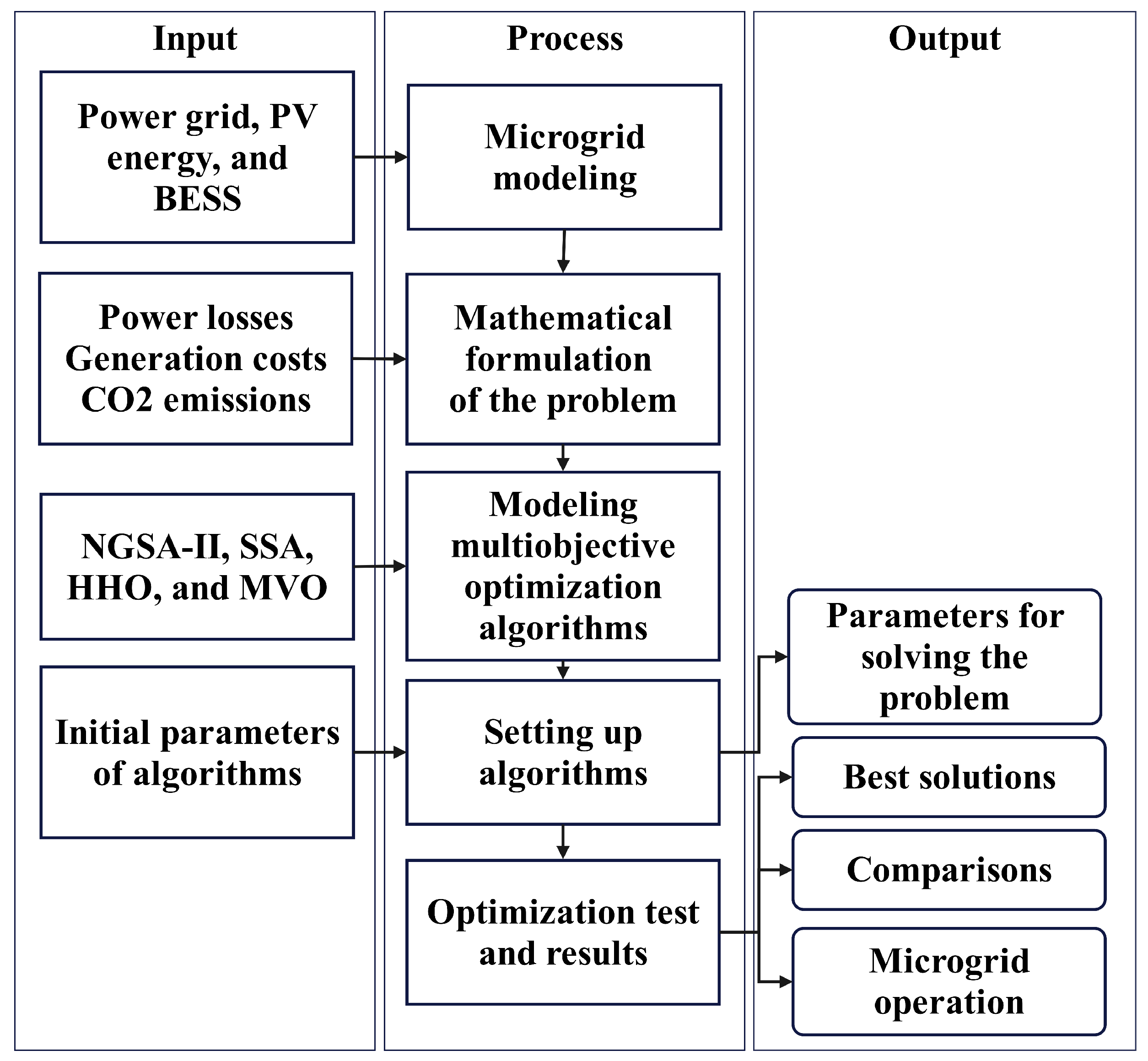 - Modu, B.; Abdullah, M.P.; Alkassem, A.; Hamza, M.F. Optimal rule-based energy management and sizing of a grid-connected renewable energy microgrid with hybrid storage using Levy Flight Algorithm. Energy Nexus 2024, 16, 100333. [Google Scholar] [CrossRef]