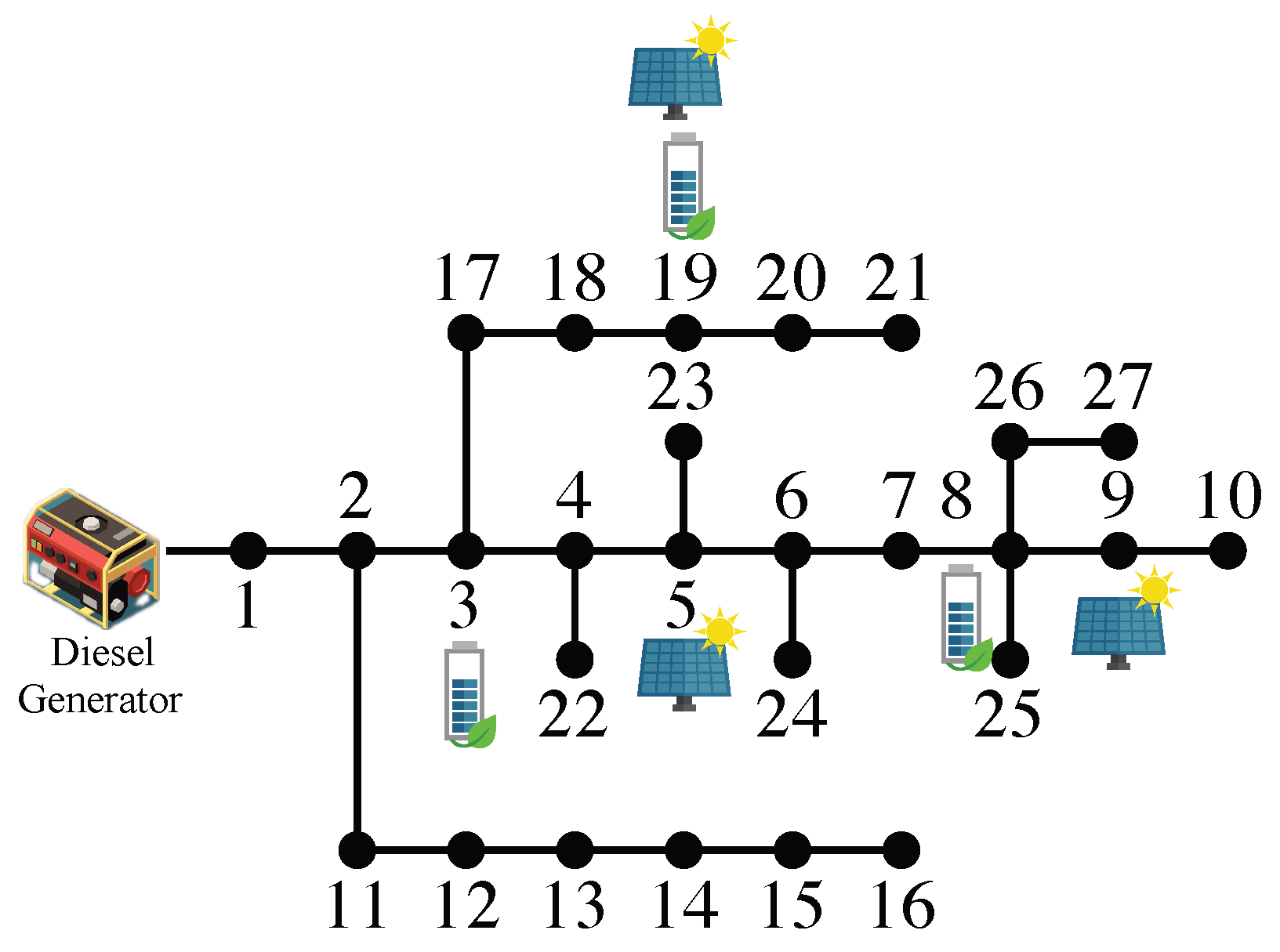 | Battery 27-Node Feeder Test Case System (Rural) | ||||