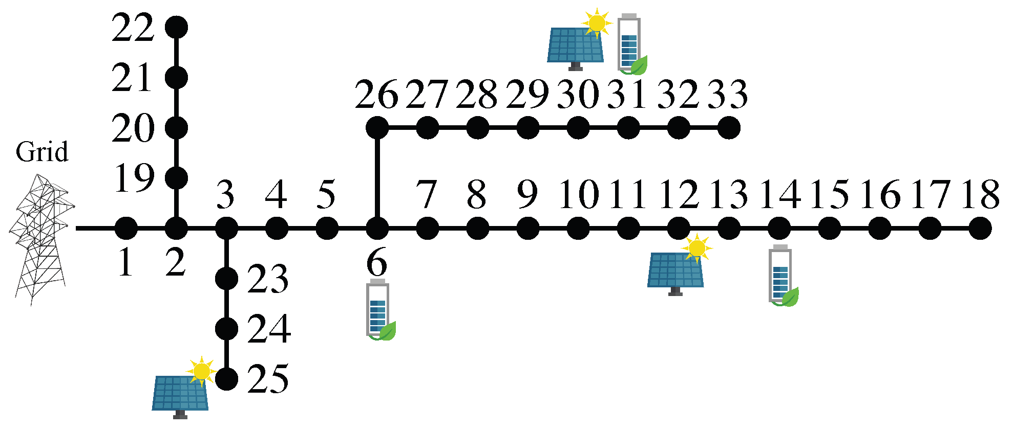 | 27-Node Feeder Test Case System (Rural) | 33-Node Feeder Test Case System (Urban) | ||