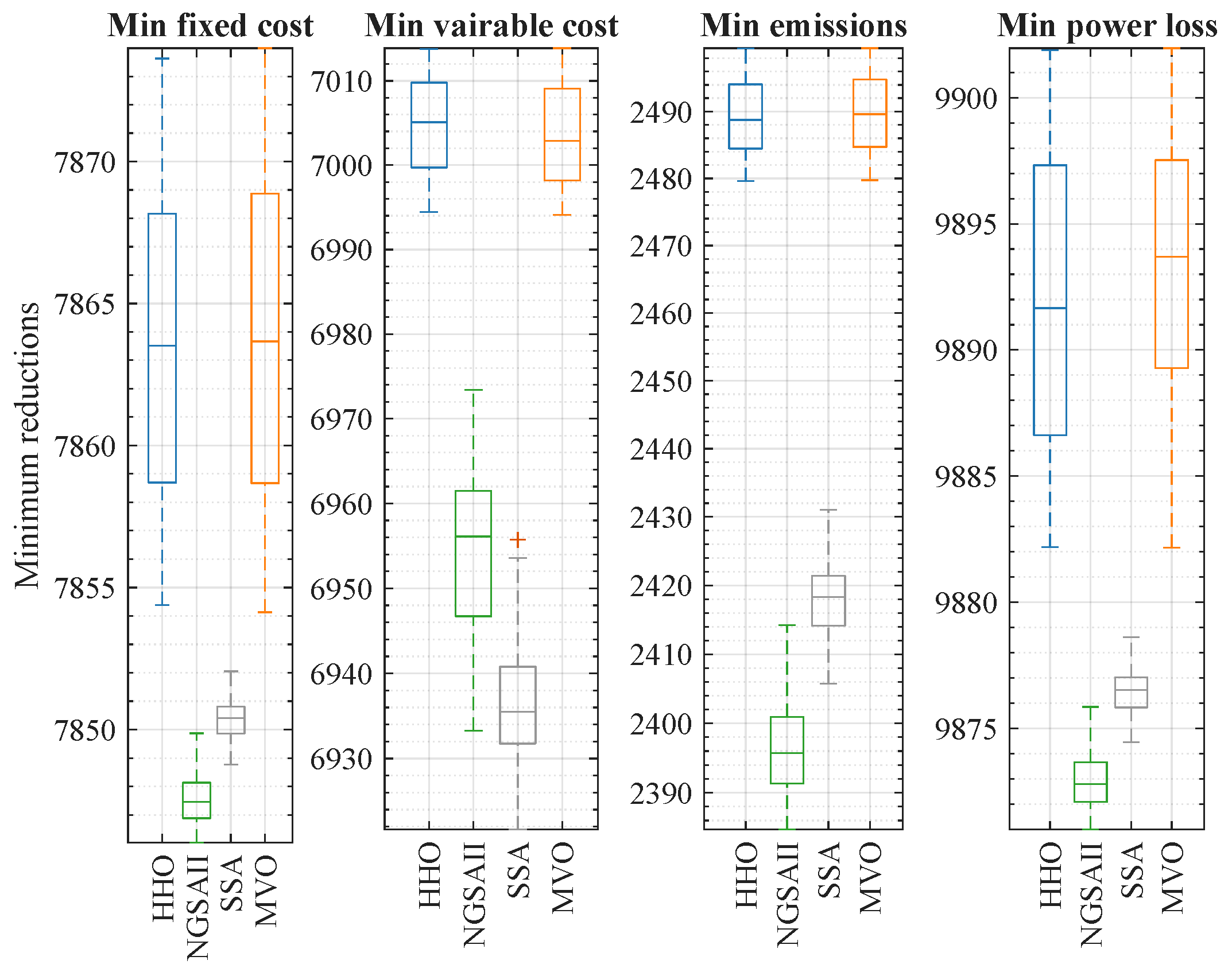 | HHO | 7854.3777 | 6998.6600 | 2492.1575 | 9885.9473 |