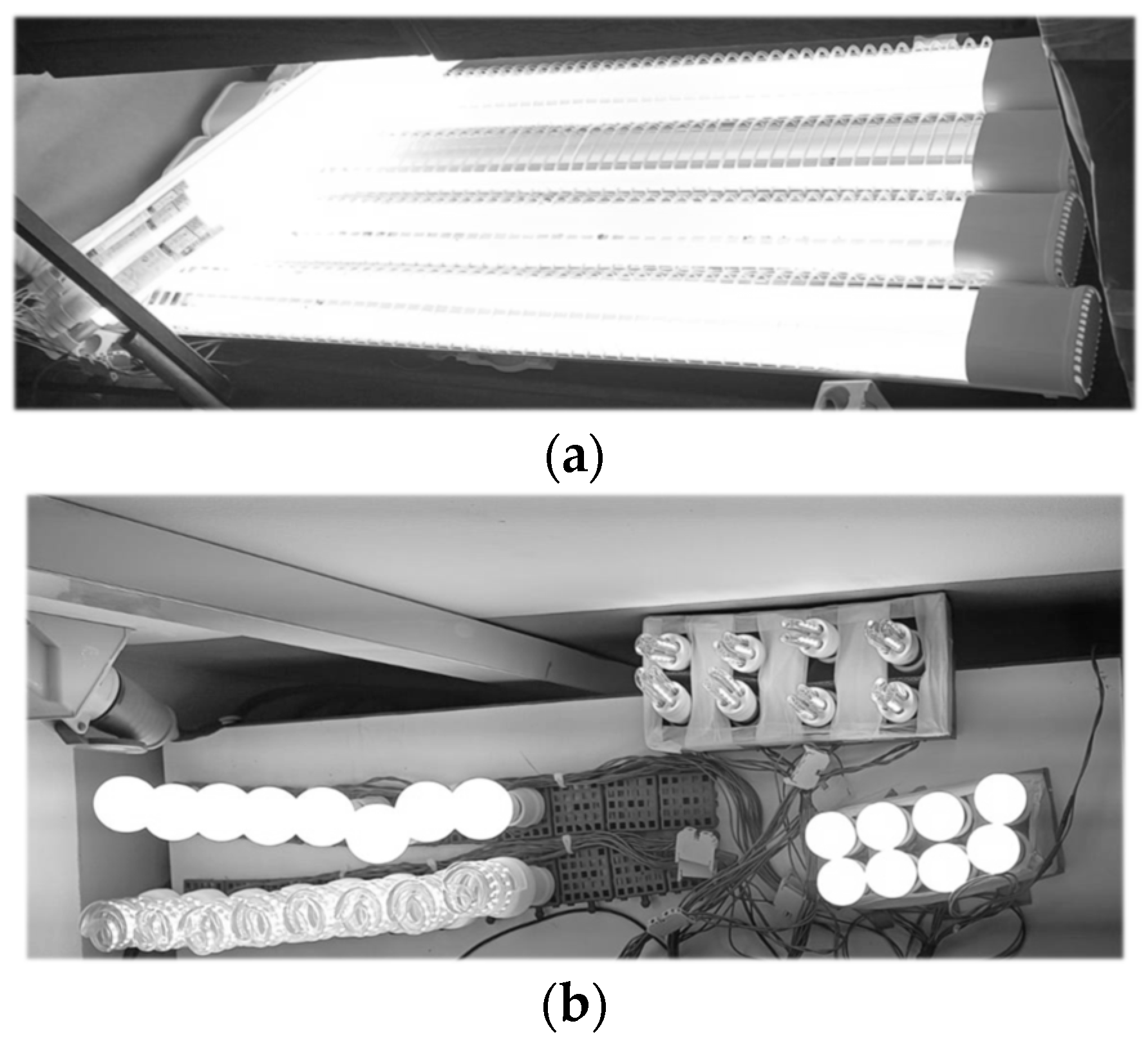 Table 3. These were distributed among incandescent lamps and various LED lamps, which were switched either by a manual switch or a contactor, as well as the LED-All group, which was controlled by a contactor.