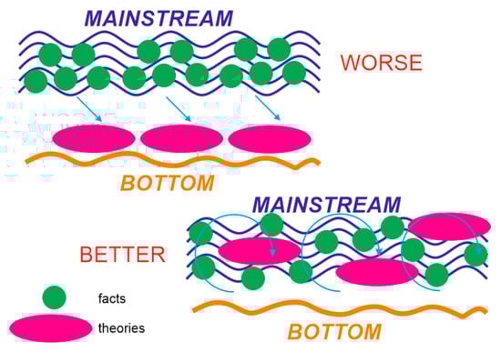 The social sciences differ essentially from geology and other natural sciences, but it appears that the over-dominance of fact-based research without in-depth theorizing stimulates a specific, somewhat ‘chaotic’ [16] character in scientific progress with growing gaps in the awareness by the research community. It is relevant to add that critical literature reviews, bibliometric analyses, and various theoretical developments are not typical to only social sciences, but these are also very popular in medicine and the environmental sciences. Generally, a shift from geological theory only to theoretical geologyis proposed (Figure 5). Of course, this does not mean less attention is paid to facts, but such a shift would facilitate progress in science via critical literature reviews, bibliometric approaches, comparison of the previous results and their updates (not necessarily with involvement of new facts and emphasis on the latter), conceptual classifications, in-depth theoretical treatments, etc. At the least, these factors would diminish unawareness and help promote modern geology to become more diverse. For example, the very fresh update on the Cenozoic eustatic reconstruction by Miller et al. [85] should not be ‘missed’ by geologists.