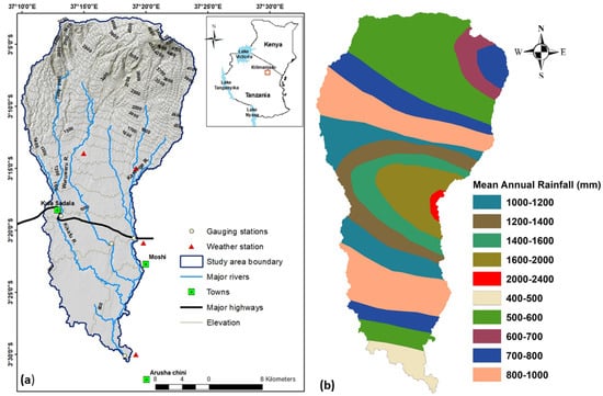 Location of KWK watershed (a) and mean annual rainfall (b).