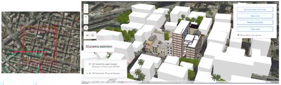 22], an economic and timely procedure for 3D cadastral data acquisition and the 3D visualization of real properties as block models (LoD1) on a mobile phone’s screen in real time is presented. The mobile application enables the generation of 3D building models through an automated modeling algorithm. The user is asked to digitize the boundaries of his/her property unit on the available basemap, and this information is processed together with other geometric data (such as height, the floor where the property is located, etc.) in order to provide the 3D property model. As a basemap, a recent orthophoto of the area under cadastral survey overlaid with 2D floor plans may be the best option for an accurate, assured, and authoritative (AAA) 3D cadaster [