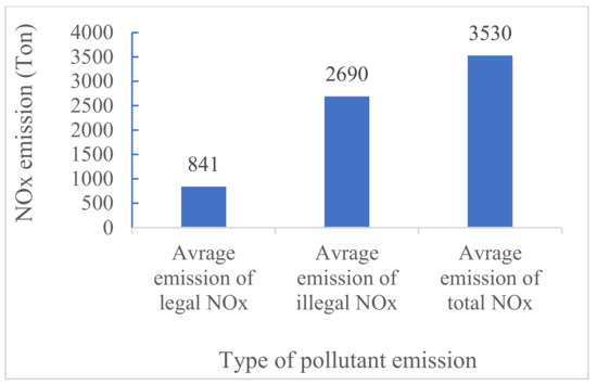 The reports showed that 25.4% of electricity in Iran is generated by renewable energies or without fossil fuels usage in combined cycle power plants, which means that they do not emit any air pollutants [11]. On the other hand, about 74.6% of electricity is directly generated using fossil fuel power plants [11]. The majority of Iran’s fossil fuel power plants use natural gas as their energy source. However, in some cases, within short periods other fuels, such as diesel fuel and mazut, are replaced with natural gas in some power plants, thereby increasing the amount of air pollutants emitted. It was reported that only around 6 power plants out of 123 sometimes use mazut as their energy source [12]. Another report shows that nearly 6% of electricity in Iran is generated by mazut [13]. Additionally, only 0.5% of the total amount of electricity generated in Iran is produced by diesel power plants [14]. This information shows that the most significant fuel used in Iran’s power plants is natural gas. The Ministry of Energy of the Islamic Republic of Iran is currently trying to reduce the amount of time it is taking to of replace mazut with natural gas in power plants to decrease the quantity of air pollutants emitted. Between 21 March 2019 and 21 March 2020, 6 billion liters of diesel fuel, 3.5 billion liters of mazut, and 67 billion m3 of natural gas were consumed in Iran’s thermal power plants [13,15]. In this study, it is assumed the periods in which that power plants use diesel fuel and mazut as energy sources are too short to have a significant effect on the quantity of air pollutants emitted at the national level. Approximately 0.37% to 0.57% of total natural gas has been used for the generation of electricity for the activities of legal cryptocurrency miners. Additionally, 0.74% to 2.22% of total natural gas has been used for the activities of illegal cryptocurrency miners. It can be concluded that the total natural gas used to mine cryptocurrencies in Iran should be between 1.11% and 2.78%. Table 1 shows the amount of natural gas that is used for both illegal and legal cryptocurrency miners. The total quantity of natural gas used to generate electricity for cryptocurrency miners in Iran was estimated to be between 844 and 2111 million m3. Nearly 563 to 1689 million m3 and 281 to 422 million m3 of natural gas were used to generate electricity for illegal and legal cryptocurrency miners, respectively.