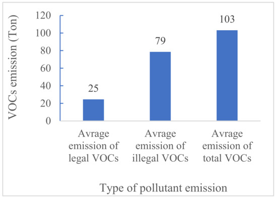 The results illustrate that 58 to 147 tons (on average 103 tons) of VOCs are also annually emitted into the atmosphere of Iran by generating electricity for use by cryptocurrency miners. The amounts of legal and illegal VOCs emission caused by the activities of cryptocurrency miners are 6 to 10 (on average 8 tons) and 13 to 40 (on average 27 tons), respectively (see Figure 4). Organic substances with a high vapor pressure at room temperature are known as VOCs. They have a low boiling point that permits them to evaporate quickly. Most of the VOCs are dangerous for human health [21].