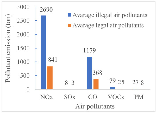 The comparison of average legal and illegal air pollutants emitted due to the activities of cryptocurrency miners in Iran.