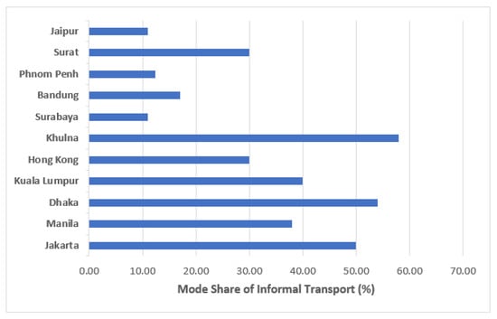 Mode share of informal transport in Asian cities. Source: Compiled from [54].