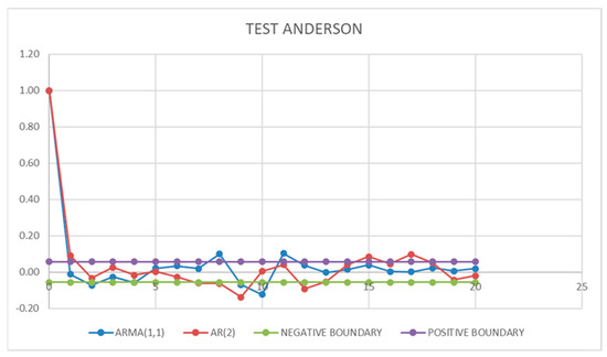 The selection of the optimal synthetic time series production model is made through the Anderson test. The model that is mostly within the limits