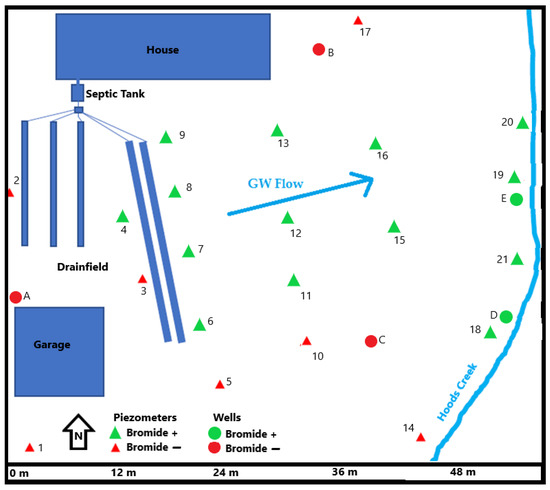 - Geary, P. Effluent Tracing and the Transport of Contaminants from a Domestic Septic System. Water Sci. Technol. 2005, 51, 283–290. [Google Scholar] [CrossRef]