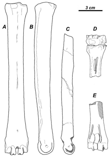 The compilation of the available taxonomic data reveals that the subfamily Capreolinae provided one of the most diversified evolutionary radiation of cervids during the late Miocene in western Eurasia (Table 1). In most cases, the paleontological record does not include evidence on the type of reduction in the lateral metacarpal bones. However, the abundant fossil material of Metadicrocerus variabilis (Cervavitus variabilis) from the late Miocene of Ukraine reveals the early stage of reduction in the proximal parts of second and fifth metacarpals, while their distal pulley-like articulations remain fully functional [18]. This morphological condition preludes the telemetacarpal condition seen in modern Capreolinae (Figure 2A–C).