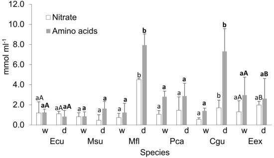2.4.4. Free Amino Acids and N Transport