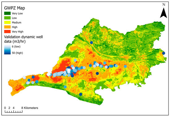 Final GWPI map of Zakho, along with the location of validation dataset (30%) of wells.