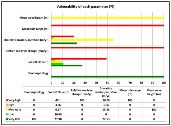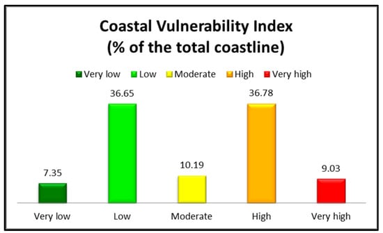 CVI bar chart for coastline vulnerability classes (%).