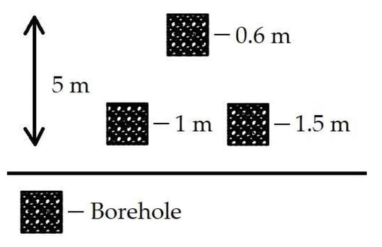 A total of 46 points were examined, each including 3 boreholes of different depths of 1.5, 1.0 and 0.6 m, but the same diameter (0.08 m). The location of the research boreholes for each point is shown in Figure 2.
