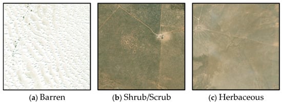 Examples of potential land for nature-based solutions (NBS) for the state of New Mexico (NM) were identified by using classified satellite images from the Multi-Resolution Land Characteristics Consortium (MRLC) with detailed descriptions of the land classes [18], including the barren, shrub/scrub, and herbaceous land covers.