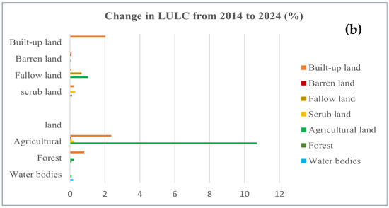Percentage change in LULC: (a) 2003–2014, (b) 2014–2024.