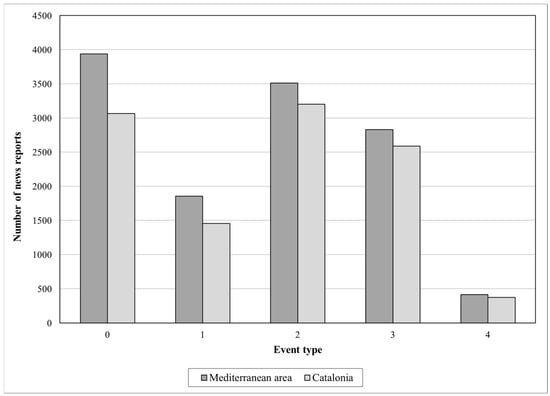 Distribution of news reports according to the type of meteorological events in Catalonia and the broader Mediterranean region between 1984 and 2019.