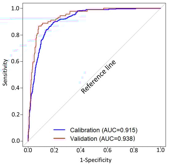 This dataset was randomly divided into calibration and validation subsets, using an 80:20 ratio. Although there are no fixed rules for determining this division, the 80% calibration and 20% validation split is commonly used [40] to balance the amount of data used for model training and performance testing.